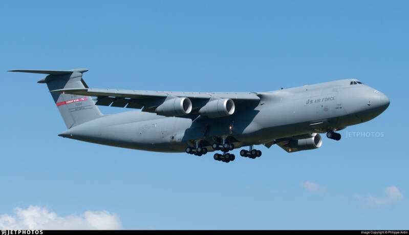 The C-5M Super Galaxy with s/n 87--0041 from the 439th Airlift Wing lost one of it's 28 wheels during take-off from Westover Air Reserve Base, Massachusetts and declared an emergency landing after losing it's wheel on tuesday night.